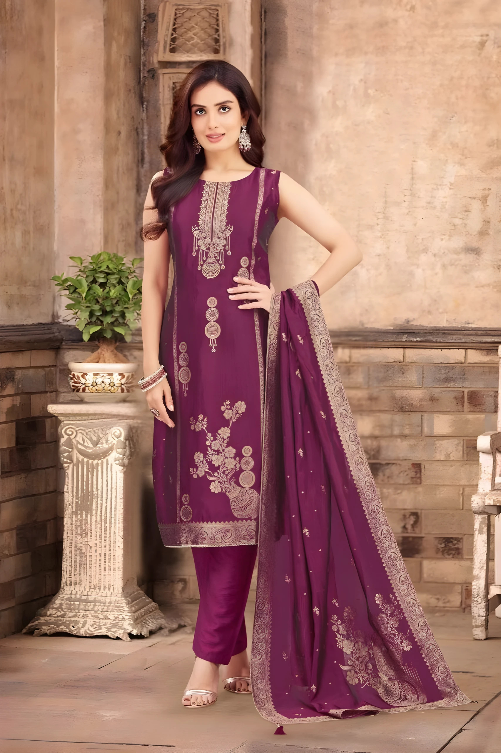 Work : Embroidery with heavy dupatta
